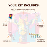 Perfect for animal lovers, modern art enthusiasts, or anyone who loves bright, bold colors, this "Abstract Giraffe" paint-by-numbers kit is a fun and relaxing way to express your creativity and decorate your space.