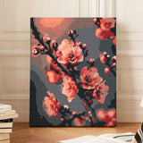 Experience the timeless beauty of cherry blossoms with the "Blooming" paint-by-numbers kit. This stunning design captures the delicate elegance of blooming flowers in rich red and orange hues against a dark, moody background, creating a mesmerizing visual contrast.