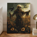 Enter the eerie and captivating world of Field of Shadows, a breathtaking Paint by Numbers Kit that blends the warm glow of sunflowers with the haunting presence of a skeletal scarecrow. With dark crows circling under a stormy sky, this artwork paints a story where life, decay, and nature’s beauty coexist.