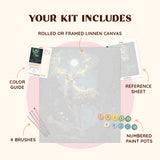 🖌️ All-Inclusive Kit: Comes with a pre-printed canvas, high-quality paints, and essential brushes—everything you need to dive into your creative journey.