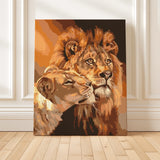 Capture the regal beauty of the animal kingdom with the "King and Queen" paint-by-numbers canvas. This stunning artwork showcases a proud lion and his lioness in an intimate moment of connection, symbolizing strength, unity, and love. Perfect for art enthusiasts and nature lovers alike, this canvas brings a touch of royalty to your space.