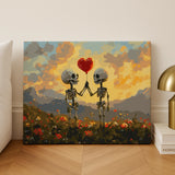Celebrate a love that transcends time with our enchanting "Love Beyond Death" paint-by-numbers canvas. This captivating artwork depicts two skeletons holding a heart-shaped balloon against a stunning sunset backdrop, surrounded by vibrant wildflowers. Perfect for those who adore unique, symbolic, and heartfelt designs, this kit offers a creative way to express eternal love.