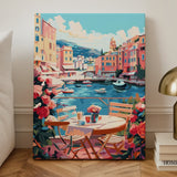 Step into a tranquil Mediterranean getaway with the "Magical Place" paint-by-numbers canvas. Featuring a charming harbor scene with colorful architecture, serene waters, and a picturesque outdoor café adorned with vibrant roses, this artwork invites you to unwind and embrace the beauty of coastal life.