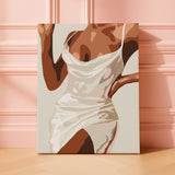 Dive into sophistication with the "Maya" paint-by-numbers canvas, showcasing a stunning figure in a flowing white dress. This minimalistic yet powerful design highlights elegance, confidence, and timeless beauty, making it an ideal addition to any art collection.