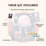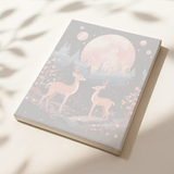 Step into a dreamlike world with the "Moongaze" paint-by-numbers kit. This enchanting design captures a pair of elegant deer standing amidst a magical forest under the soft glow of a pink moon and twinkling stars. Perfect for nature enthusiasts and stargazers, this artwork brings tranquility and wonder to your painting experience.