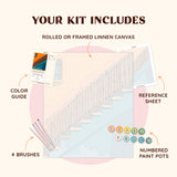 No Frame: This option includes a rolled linen canvas, which means you won’t need to iron out any creases, unlike other paint-by-number kits. It’s ideal if you don’t plan to hang the painting and prefer a more flexible setup.