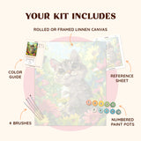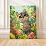 Bring joy and charm into your home with our "Playful Eyes" paint by numbers kit, featuring an adorable kitten with wide, curious eyes surrounded by vibrant flowers. This heartwarming design is perfect for cat lovers and anyone looking to add a playful, colorful touch to their space. The cheerful scene captures the innocence and curiosity of a kitten exploring a blooming garden.