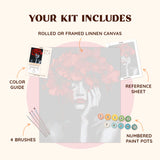 The "Poppy Grace" paint by numbers kit offers an opportunity to blend beauty and depth through each brushstroke. Dive into the world of poppies and portraiture, and let your creativity flow as you bring this passionate, graceful image to life.