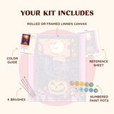 - Pre-printed, high-quality canvas featuring the Scary Pumpkin design