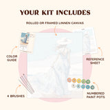 No Frame: This option includes a rolled linen canvas, which means you won’t need to iron out any creases, unlike other paint-by-number kits. It’s ideal if you don’t plan to hang the painting and prefer a more flexible setup.