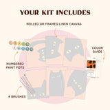 No Frame: This option includes a rolled linen canvas, which means you won’t need to iron out any creases, unlike other paint-by-number kits. It’s ideal if you don’t plan to hang the painting and prefer a more flexible setup.