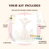 Bring a touch of safari charm to your home with the Watercolor Giraffe Paint by Numbers Canvas! This delightful design features an adorable baby giraffe surrounded by soft greenery, rendered in warm, earthy tones with a playful watercolor effect. Its whimsical and gentle aesthetic makes it a perfect addition to any cozy or child-friendly space.