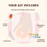 Framed Canvas: The canvas is pre-stretched on a wooden frame, making it easier to paint. This option also comes with mounting hooks, so it's ready to hang once completed. It’s a cost-effective choice, with the framed version costing $20 extra, while local framing can range from $40 to $120.