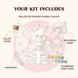 Embrace the intriguing harmony of life and nature with our "Leafy Rest" paint-by-numbers canvas. This unique design captures a skeleton nestled among vibrant autumn leaves, symbolizing the cycle of life amidst the breathtaking colors of fall. Perfect for art enthusiasts who appreciate thought-provoking and seasonal artwork, this piece is a stunning blend of creativity and symbolism.