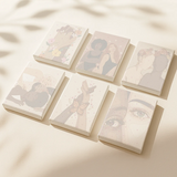 This paint by numbers artwork features six soft, modern scenes focused on connection, care, and shared moments. The images show women resting together, holding hands, and standing close, with simple shapes and gentle lines. Warm skin tones mix with beige, blush, and earthy browns, creating a peaceful and comforting mood. The style is minimal and contemporary, letting emotion come through posture and closeness. This paint by numbers design feels calm and meaningful, offering a slow, relaxing creative experience centered on togetherness and everyday beauty.