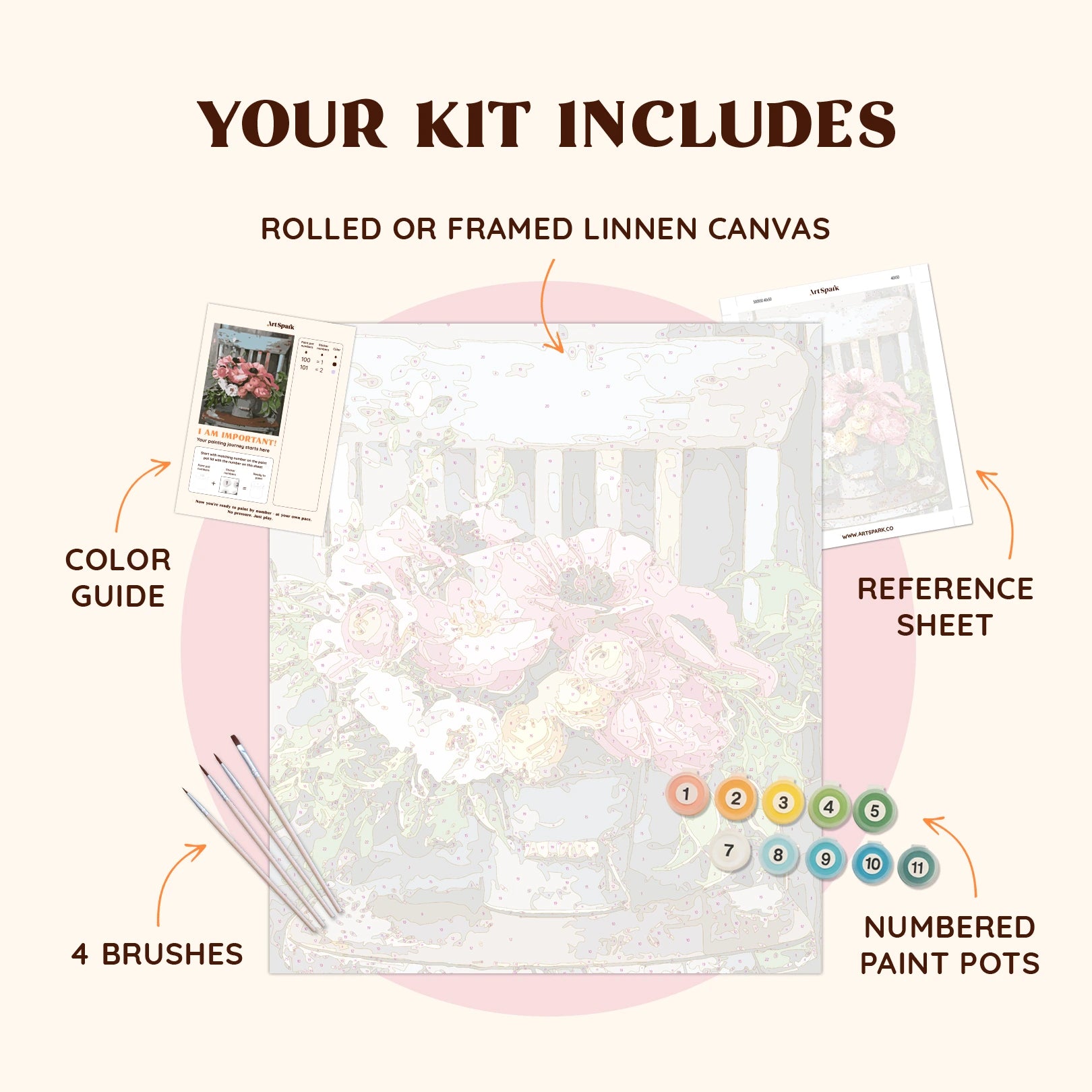 • All-Inclusive Kit: Includes a pre-numbered canvas, premium acrylic paints, and professional-quality brushes.