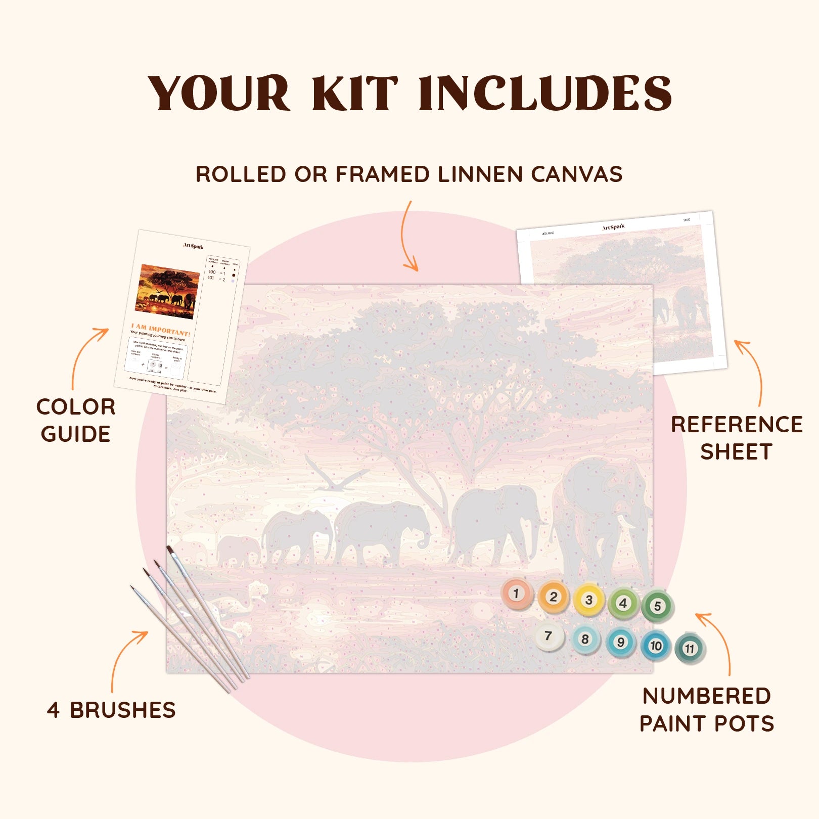 "Family of Elephants" Paint by Numbers Kit – Embrace the African Sunset