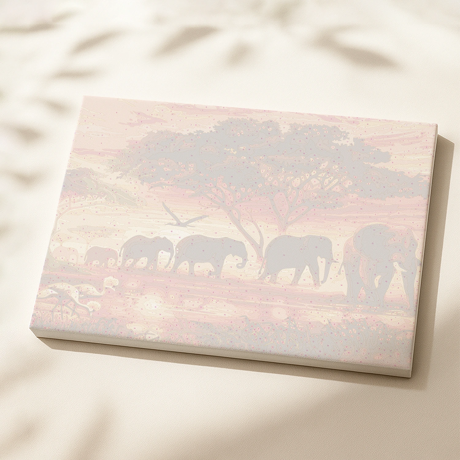 Experience the majestic beauty of the savanna with our "Family of Elephants" paint-by-numbers kit. This stunning artwork captures a herd of elephants gracefully moving under the vibrant hues of a golden sunset. Perfect for wildlife enthusiasts and creative souls, this design will transform into a breathtaking masterpiece with your touch.