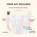 Perfect for any art lover, animal enthusiast, or anyone looking to add a pop of color to their space, this "Abstract Elephant" kit is a fun way to express creativity and unwind.