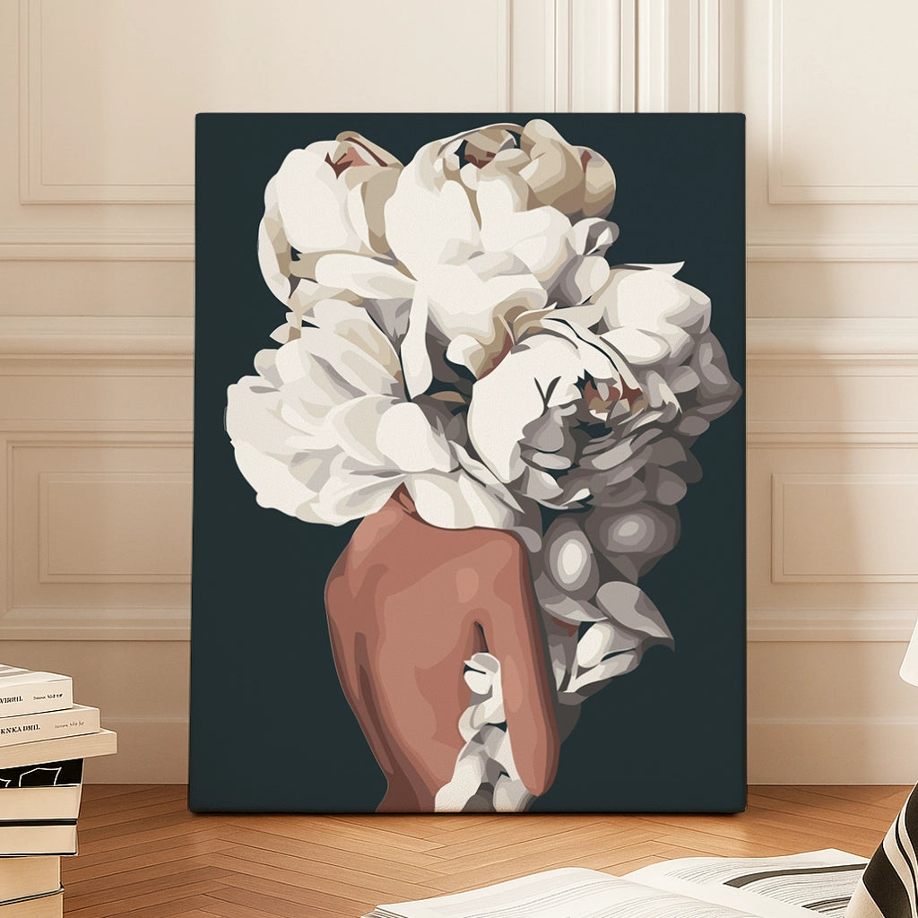 Step into a world of refined beauty with the "Clover" paint by numbers kit. This stunning artwork captures the grace of a figure enveloped in a cascade of soft, white blooms, symbolizing purity and sophistication. With its minimalist color palette and elegant composition, "Clover" is the perfect project for art lovers seeking a calming and creative escape.