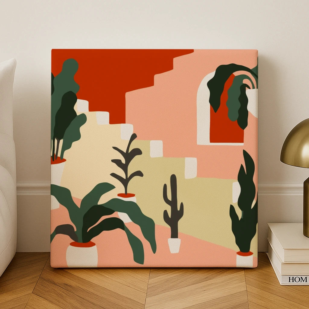 Transport yourself to a tranquil Mediterranean haven with the "Greek Garden" paint-by-numbers kit. Featuring a serene stairway adorned with lush greenery and vibrant terracotta hues, this artwork encapsulates the charm of a peaceful Greek garden. Perfect for those who love minimalist aesthetics and the beauty of Mediterranean landscapes.