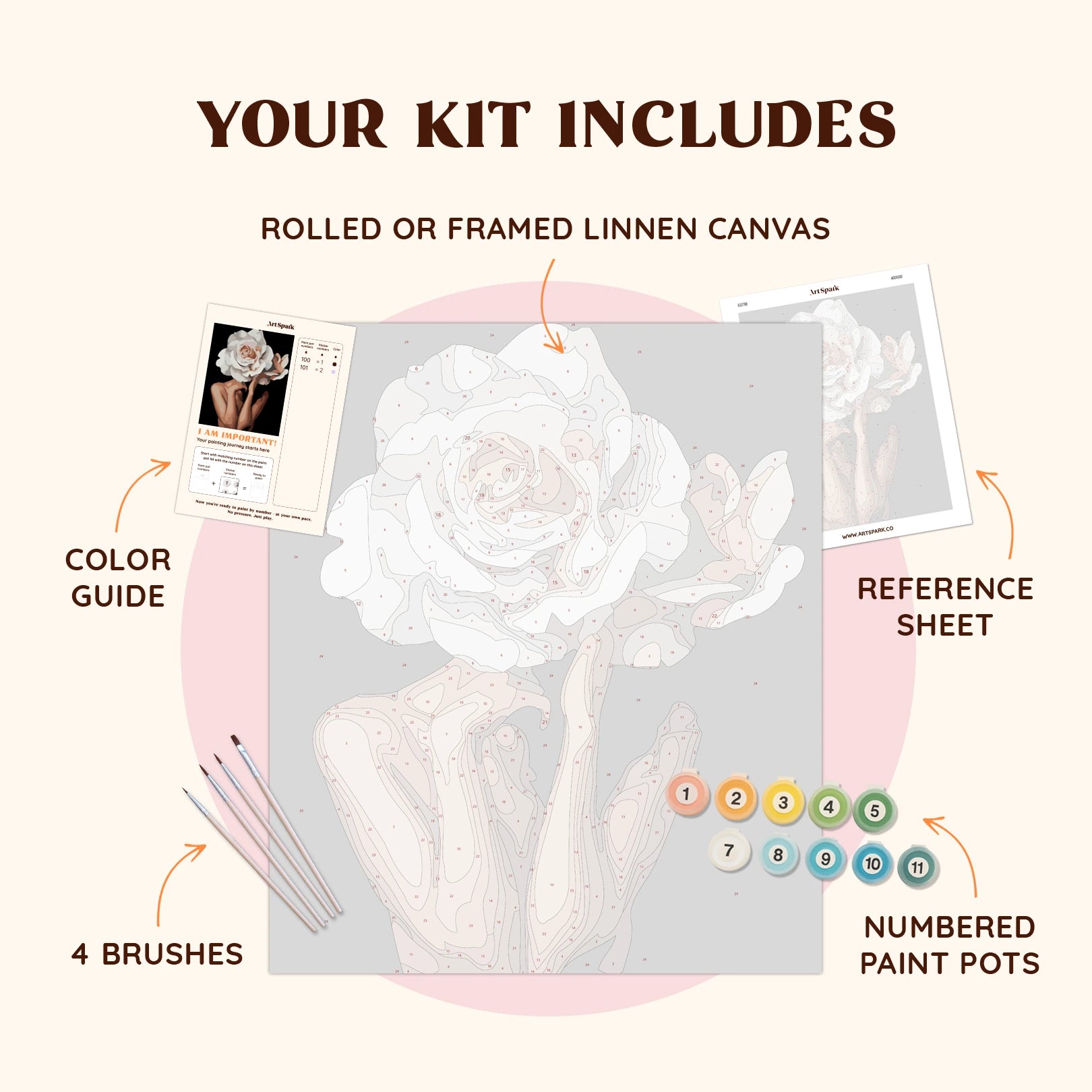 Dive into the captivating world of art with our "Lotus" paint-by-numbers canvas. Featuring a striking figure adorned with a delicate lotus bloom, this design effortlessly combines mystery and beauty. Perfect for art enthusiasts and beginners alike, this kit transforms creativity into a stunning masterpiece while offering a meditative and relaxing experience.