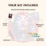 Experience the explosion of colors and emotions with the captivating "Color Burst" paint by numbers kit. This striking artwork features a bold and vibrant portrayal of a woman's face immersed in a symphony of vivid hues and dynamic splashes of paint. Perfect for those who adore modern art and bold statements, this piece brings life, passion, and creativity to your space.