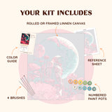 Create your own otherworldly masterpiece with "Pink Planet", a paint-by-numbers kit that takes you on an artistic journey through space and beauty. Whether you're decorating your home, looking for a thoughtful gift, or seeking a new hobby, this kit is the perfect way to ignite your creativity.