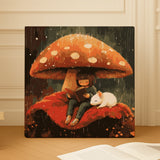 Step into a whimsical woodland scene with the enchanting Under The Cap Paint by Numbers Canvas! This design features a serene moment of a girl reading under the protection of a vibrant mushroom, accompanied by an adorable white mouse. The rainy backdrop adds a magical charm to the cozy setting.