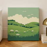 - 🌳 Calm and Scenic Artwork: Captures the soothing essence of pastoral life with rolling hills and peaceful sheep.