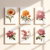 🌹 Six Unique Floral Designs – Includes rose, marigold, gerbera, peony, poinsettia, and orchid canvases.