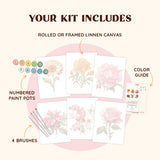 Let your creativity blossom as you paint each flower with precision and joy. Whether you're new to painting or an experienced artist, this kit offers a soothing and rewarding experience.