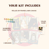 No Frame: This option includes a rolled linen canvas, which means you won’t need to iron out any creases, unlike other paint-by-number kits. It’s ideal if you don’t plan to hang the painting and prefer a more flexible setup.
