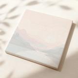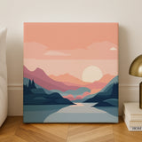 - 🌅 Serene Sunset Landscape: Explore the peaceful beauty of mountains and water beneath a soft, glowing sunset, with calming shades of pink and blue.