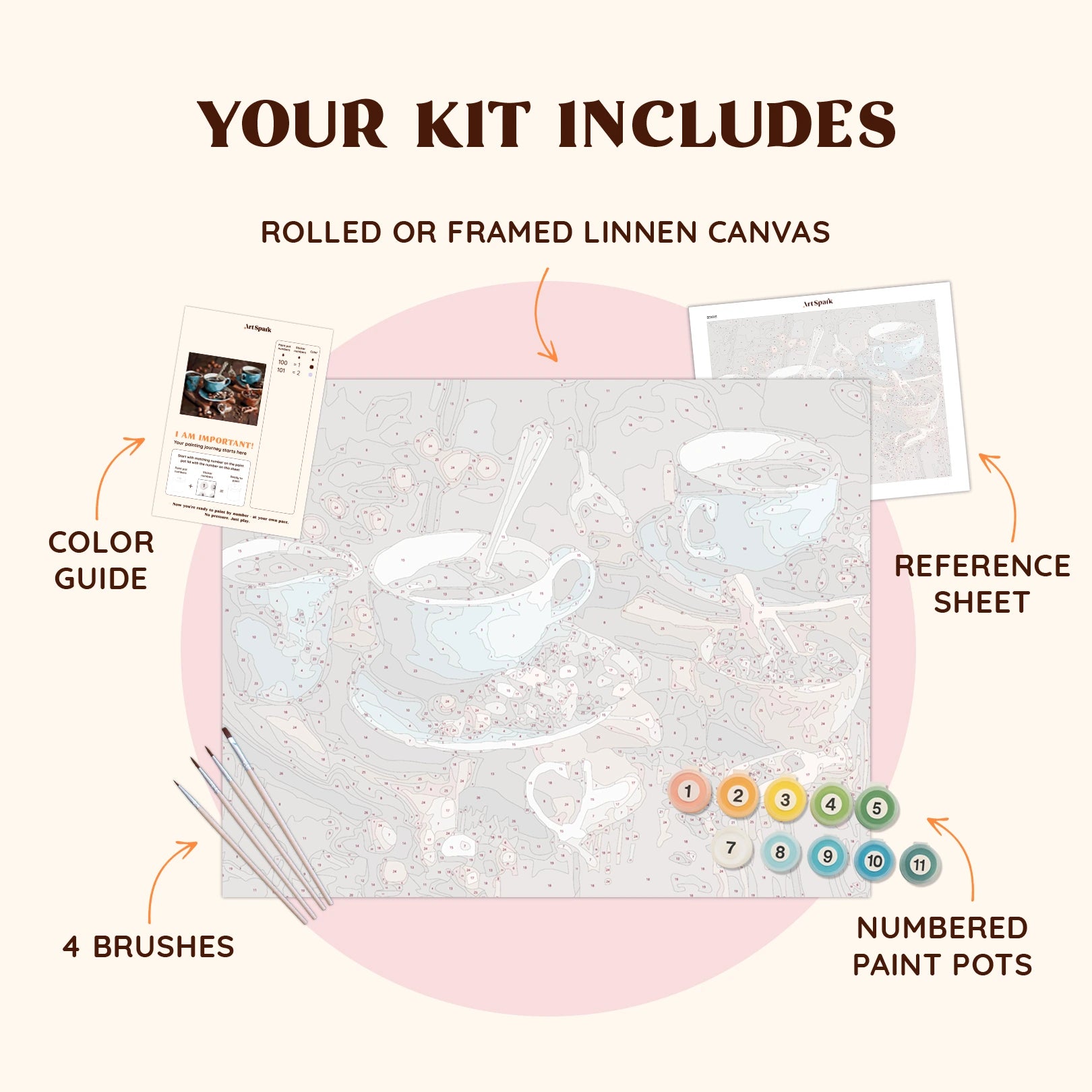 Relax and let your creativity flow as you paint this serene and cozy coffee scene. Whether you're a coffee lover or just enjoy creating beautiful art, this kit is the perfect way to unwind.
