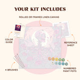 Create your own masterpiece with the Rosy Remains paint-by-numbers kit. Let the roses bloom around the skeleton as you bring this stunning work of art to life.