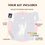 Perfect for cat lovers, night-sky dreamers, and anyone drawn to cozy, whimsical art, this design is made for slow, mindful painting sessions. It’s an ideal choice if you’re looking to unwind, disconnect from screens, and enjoy a relaxing creative ritual that results in artwork full of charm and personality.