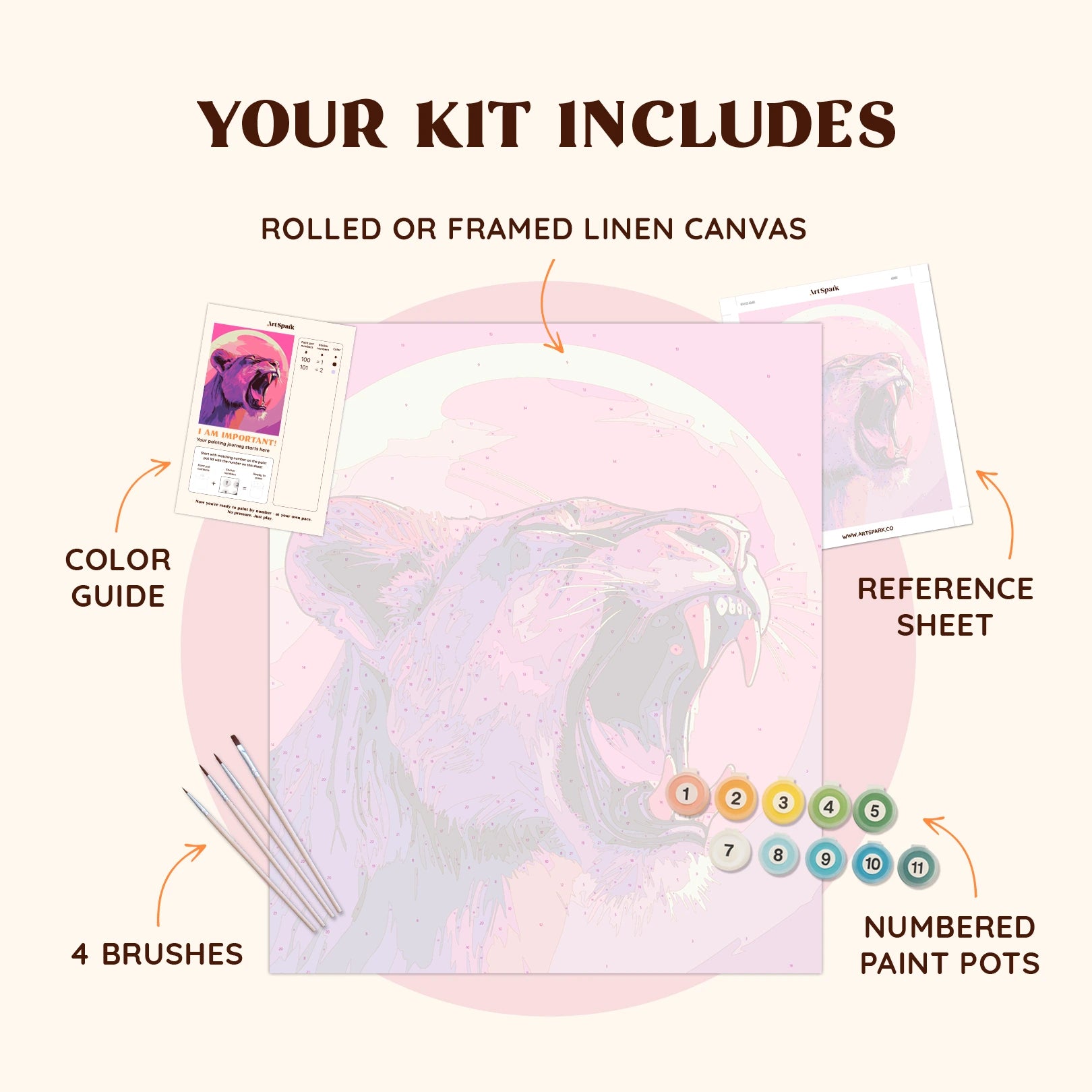 • Vivid Acrylic Paints: Bright, durable colors that bring the lioness to life.